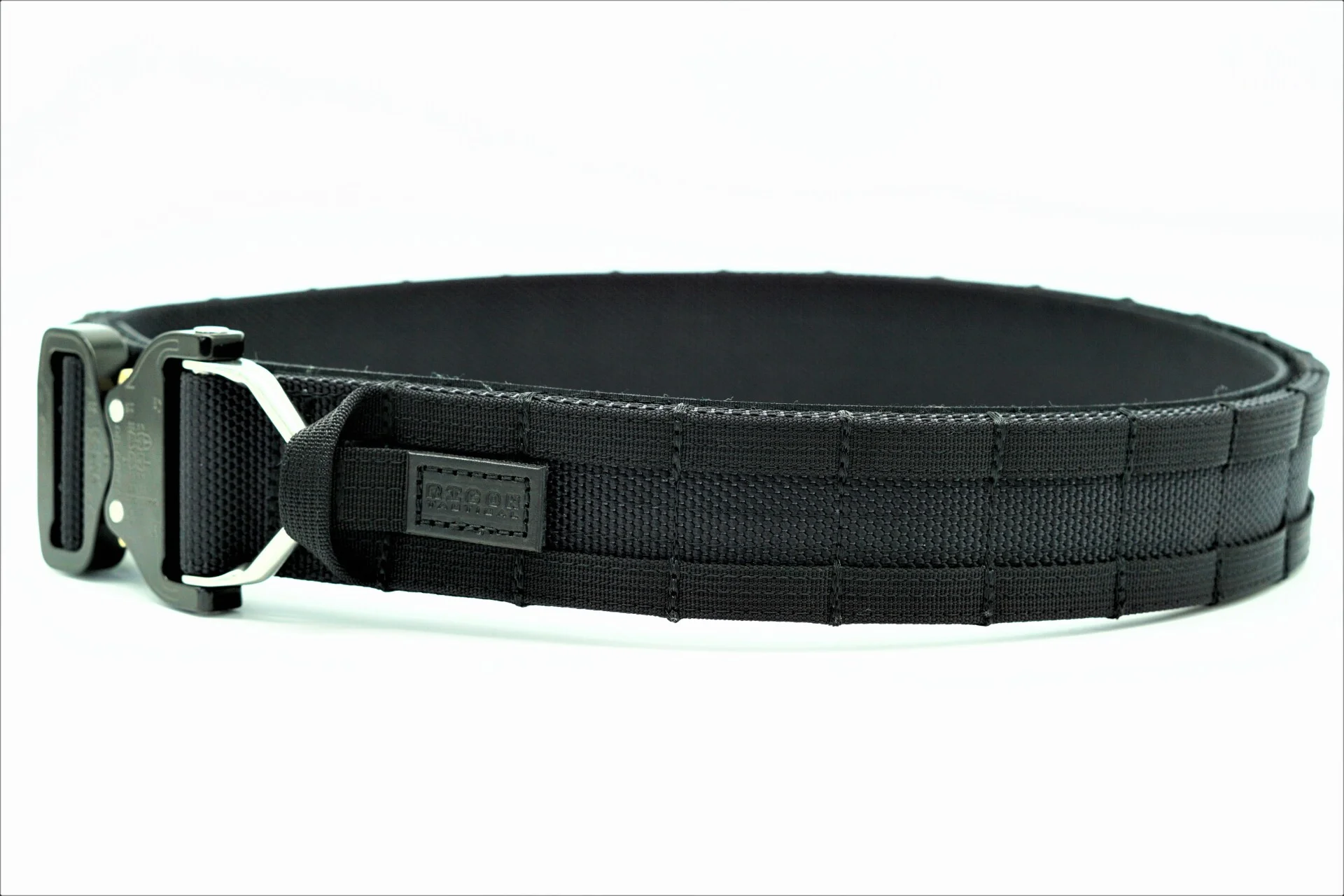 Dwuczęściowy pas taktyczny wykonany z taśmy Pasamon TS309 (2000 daN) z klamrą AustriAlpin Cobra® Pro Style o wytrzymałości 18 kN. Sztywna konstrukcja z systemem MOLLE/PALS zapewnia stabilne i bezpieczne mocowanie oporządzenia w każdych warunkach.