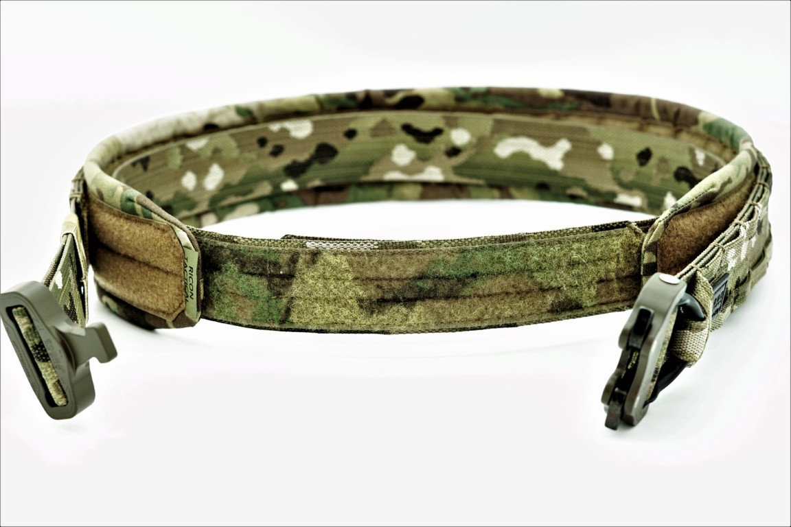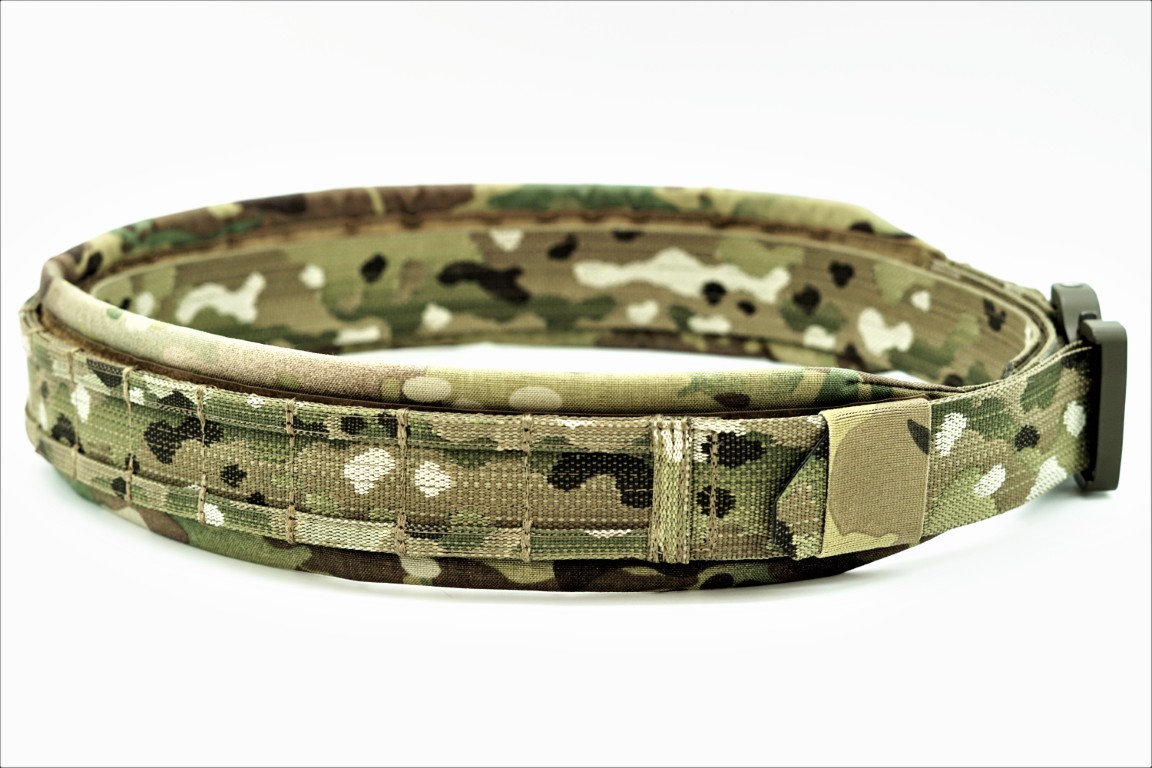 Na pasie naszyte są paski MOLLE tworzące sekcje PALS do montażu wyposażenia. Wykonane z podwójnie złożonej taśmy Polyester MultiCam® Original 19 mm (0.75″) – Jacquard Murdock Webbing o grubości 1,2 mm i wytrzymałości 362 kg.