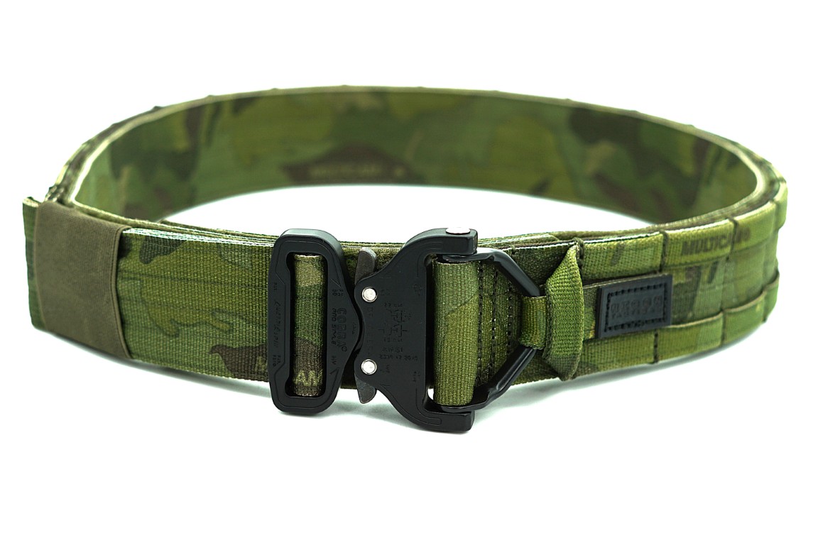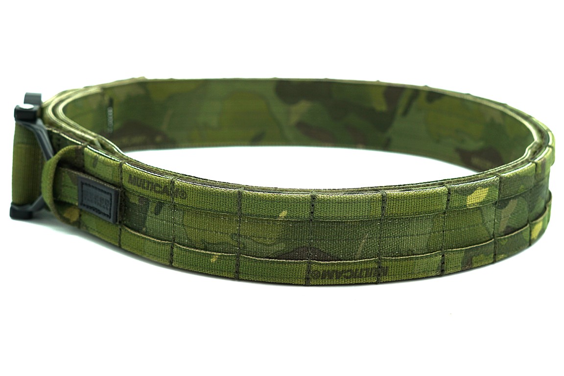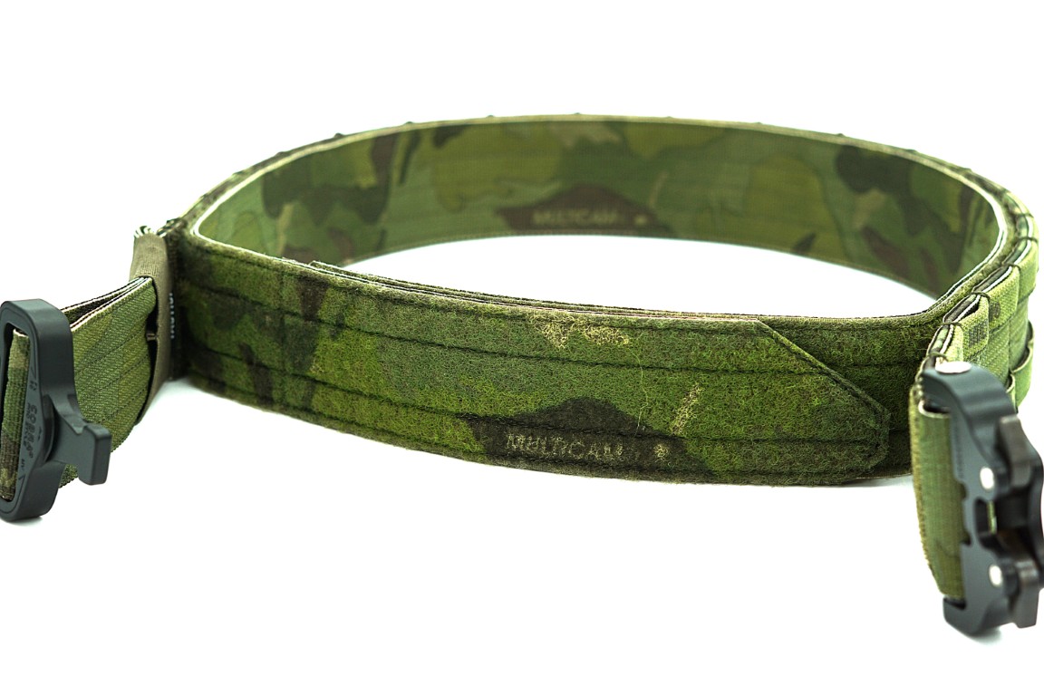 Dwuczęściowy pas taktyczny wykonany z taśm Nylon/Polyester MultiCam® Tropic TEXCEL® Original (MIL-W-17337), podwójnie farbowanych i przeznaczonych do intensywnego użytkowania operacyjnego oraz strzeleckiego. Wysoka wytrzymałość materiałów, wzmocniona konstrukcja oraz komponenty klasy premium zapewniają stabilność i niezawodność w wymagających warunkach.