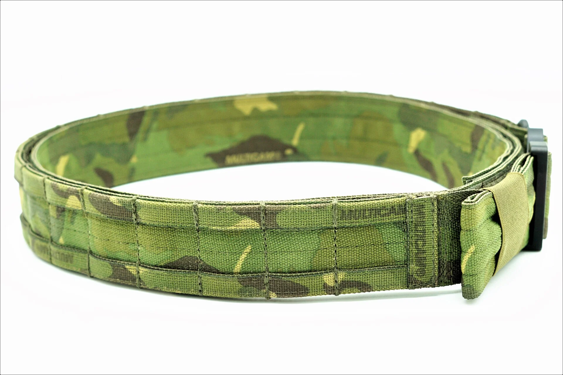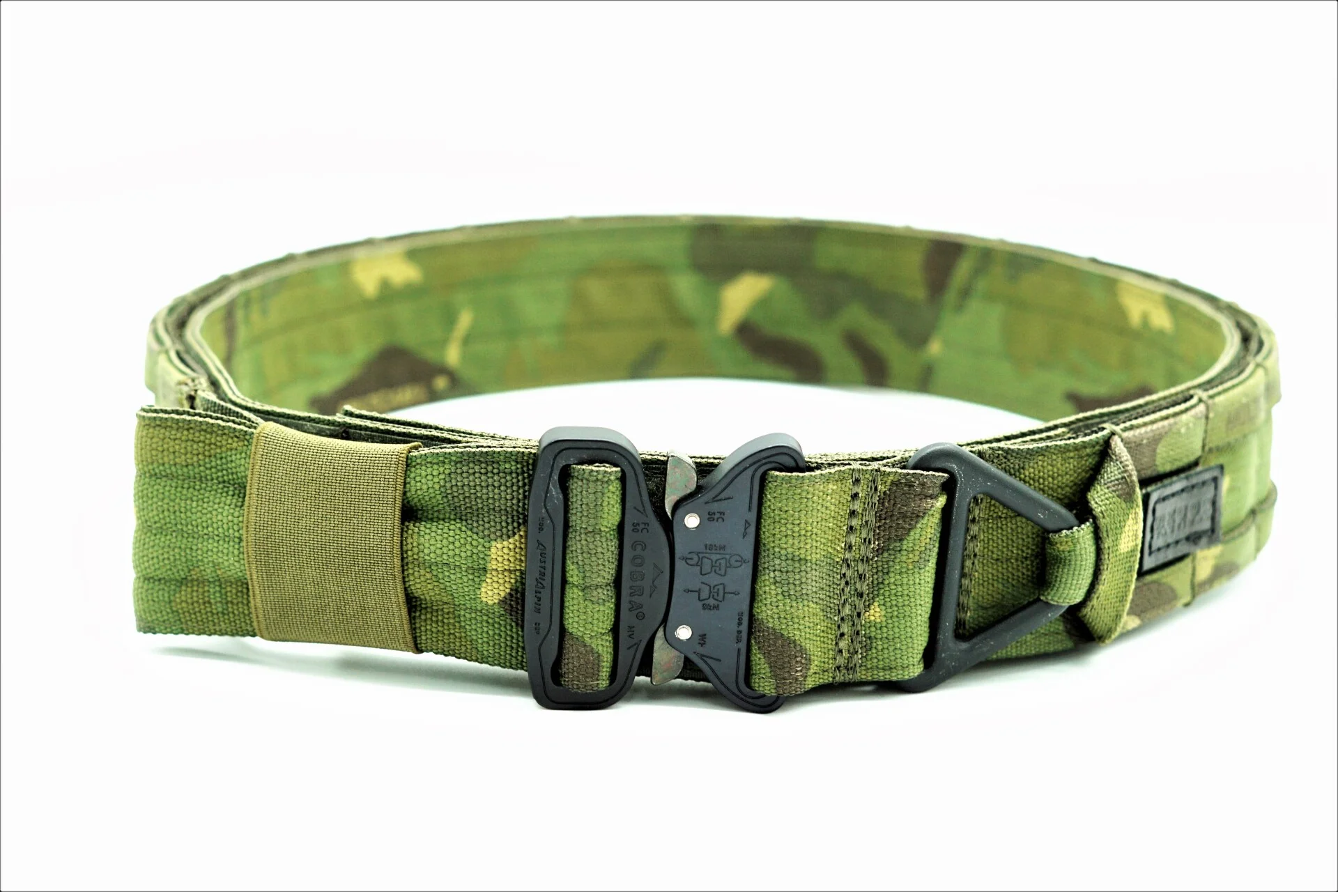Dwuczęściowy pas taktyczny wykonany z taśm Nylon/Polyester MultiCam® Tropic TEXCEL® Original (MIL-W-17337), podwójnie farbowanych i przeznaczonych do intensywnego użytkowania operacyjnego oraz strzeleckiego. Wysoka wytrzymałość materiałów, wzmocniona konstrukcja oraz komponenty klasy premium zapewniają stabilność i niezawodność w wymagających warunkach.