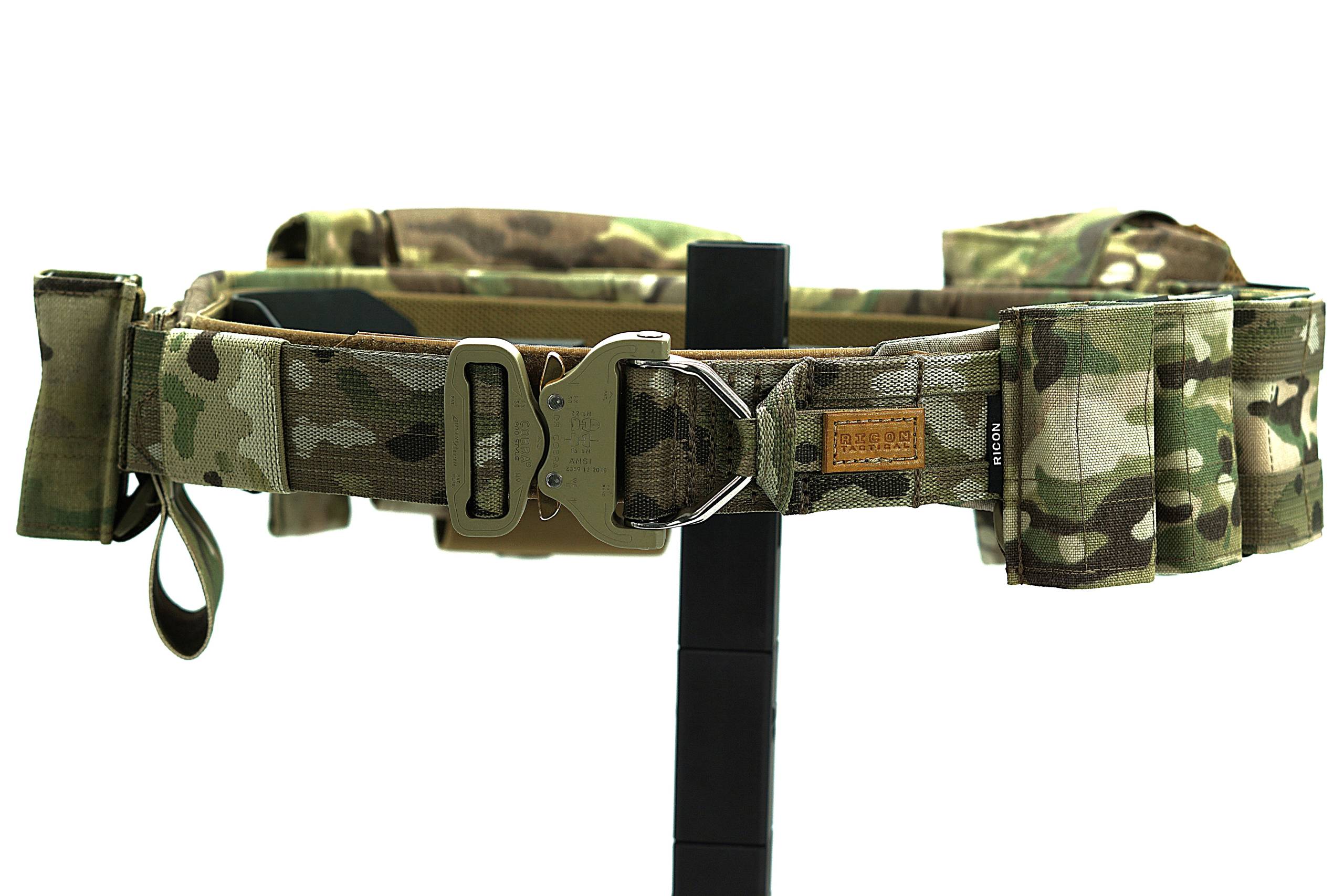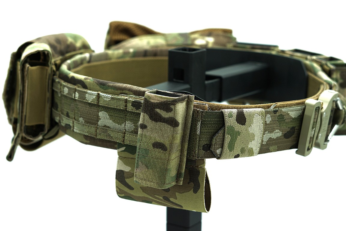 Trzyczęściowy pas taktyczny o szerokości 50 mm (2″), wykonany z taśmy Nylon/Polyester Deployment Belt MultiCam® Original (Jacquard Murdock Webbing). Konstrukcja zapewnia wysoką sztywność, stabilność oraz odporność na intensywne użytkowanie.