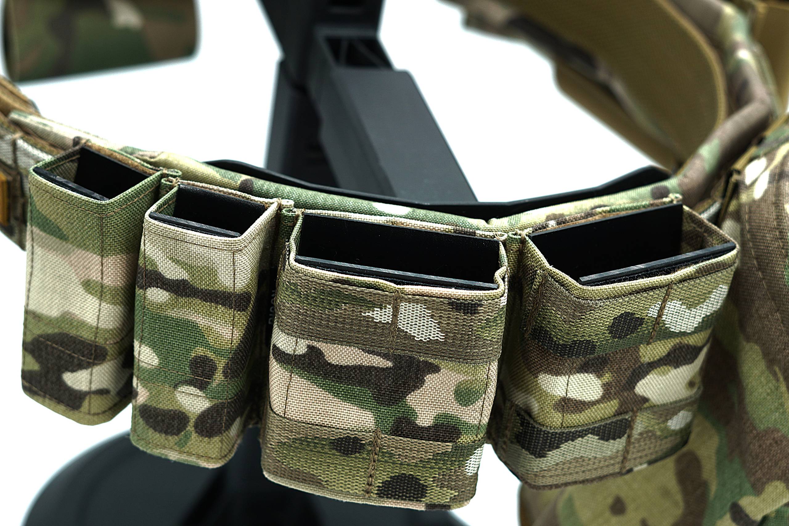 Ładownice wyposażone są w wkładki kydex, zapewniające pewne trzymanie magazynków oraz szybki dostęp do wyposażenia.